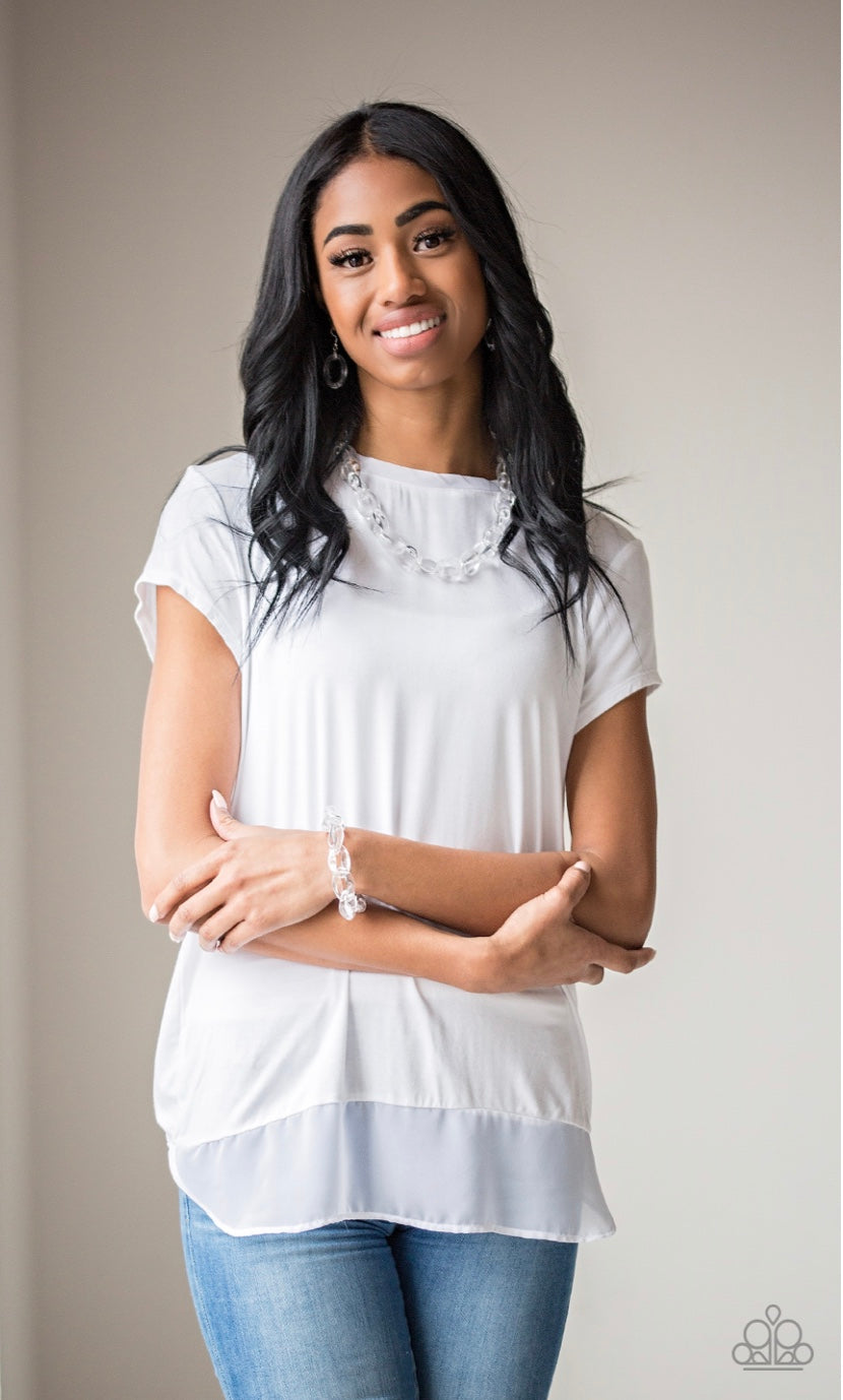 Necklace- Glassy links connect below the collar, creating a colorfully, modern chain. Features an adjustable clasp closure.