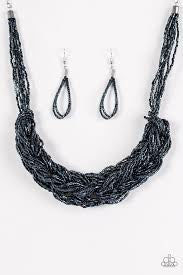 Brushed in a flashy finish, countless strands of Midnight Blue seed beads weave into a bulky square braid below the collar. Features an adjustable clasp closure.